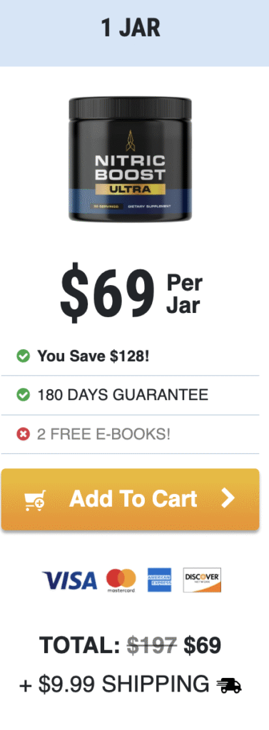 Nitric Boost is available online through the official manufacturer’s website. There are different packages available for purchase depending on your budget and preferences. Regardless of which package you buy, Nitric Bost is worth the investment . Here are the main packages: